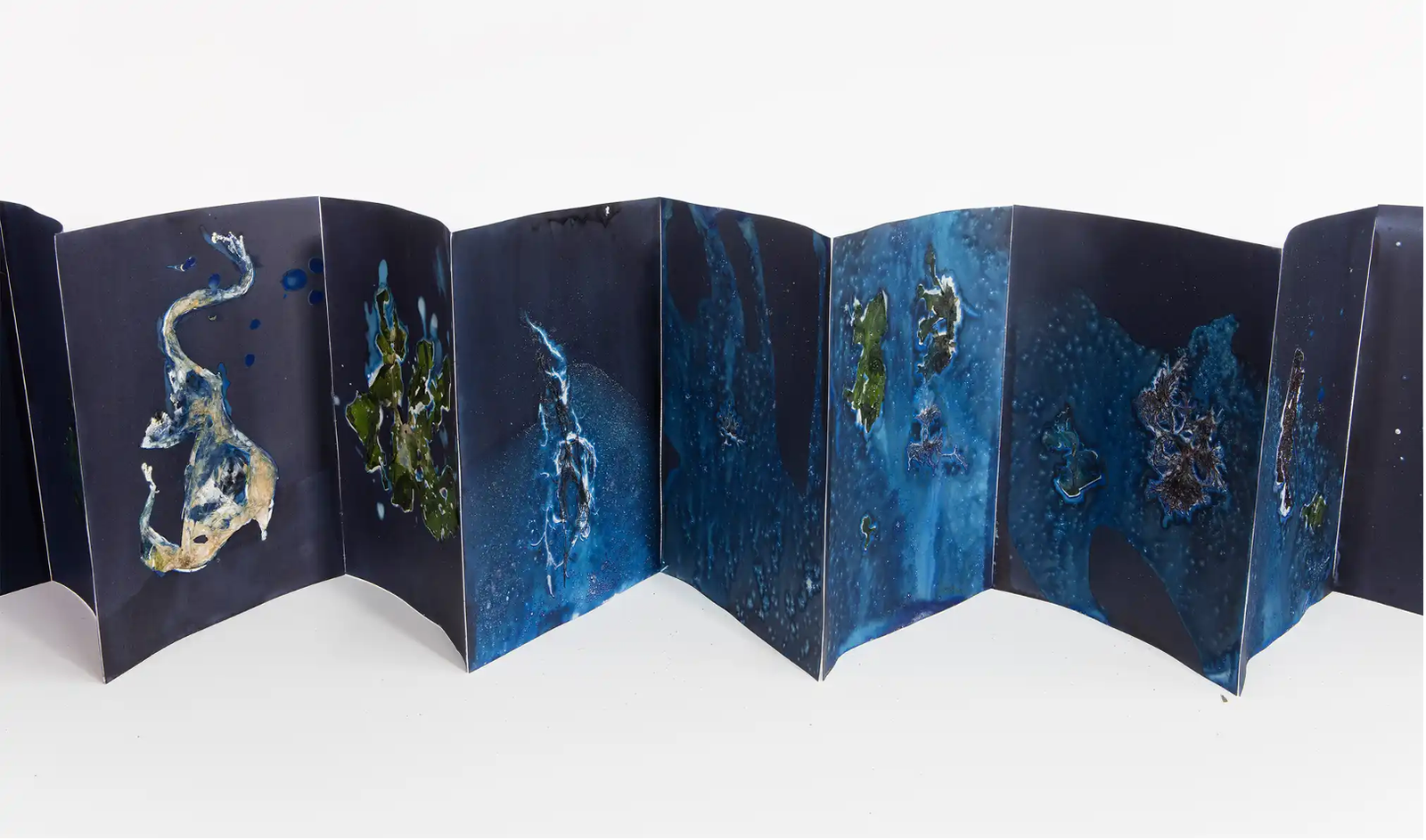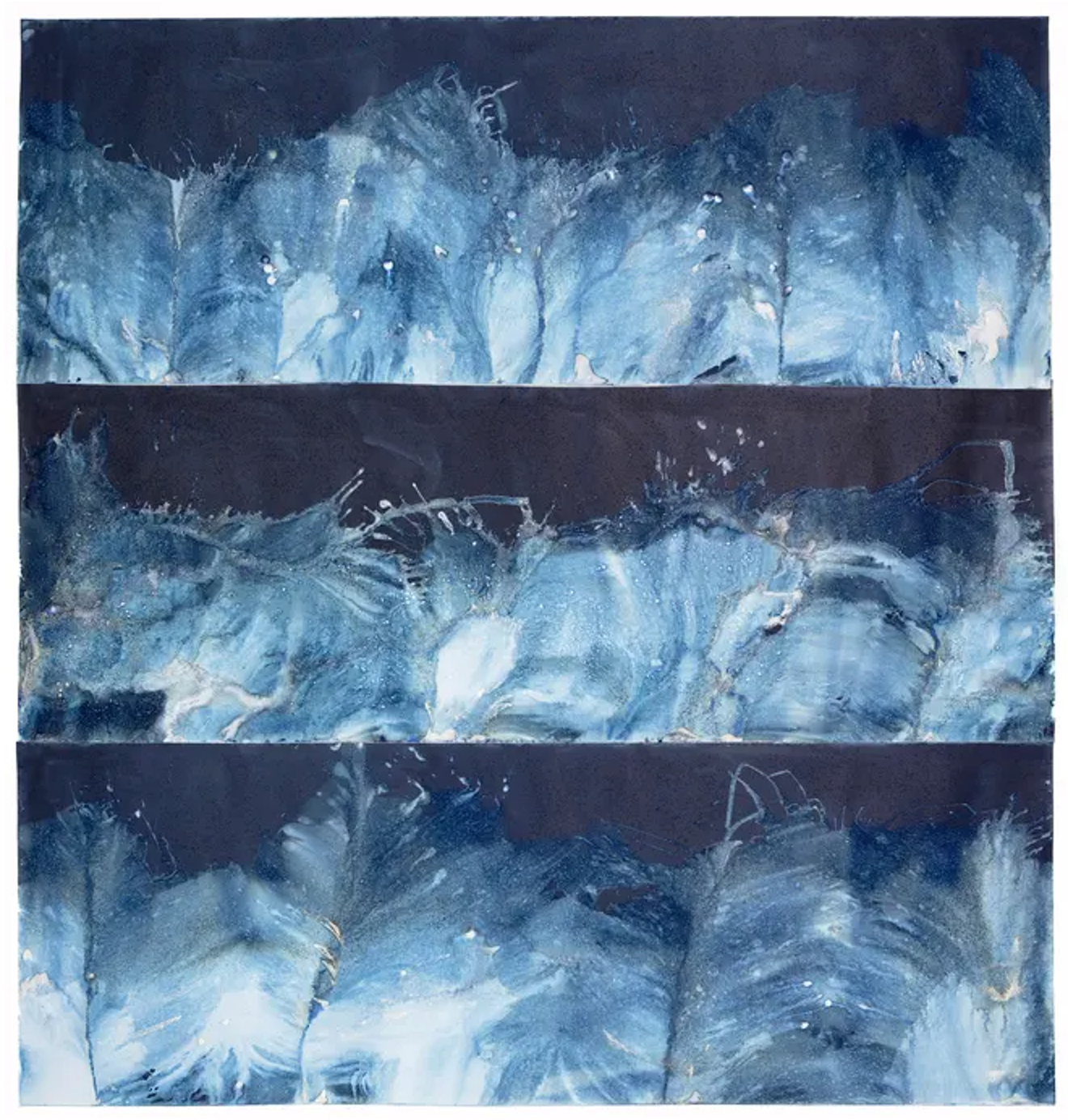 Qua bàn tay của Meghann Riepenhoff, cyanotype hóa thân thành cầu nối giữa con người và vũ trụ bao la. Mỗi tác phẩm là một lát cắt cho sóng biển và gió trời kể lại câu chuyện về sự sống và tan biến. Những tác phẩm này vẫn tiếp tục thì thầm, nhắc nhở chúng ta về sự hòa quyện bất diệt giữa nghệ thuật và bản nguyên của đất trời.